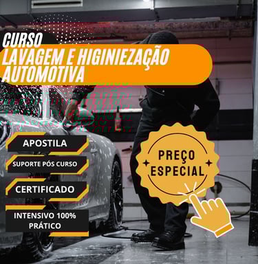 Oferecemos cursos especializados em lavagem, polimento, detalhamento e higienização automotiva para profissionais e iniciantes quem desejam empreender no segmento!